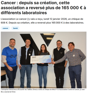 Verescence remet un chèque pour la lutte contre le cancer